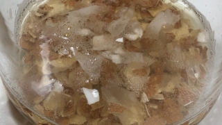理科の実験。卵のカラと、お酢。しゅわしゅわ〜。