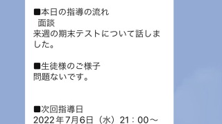 スタディコーチ:娘のスタディコーチ「カルテ」(2022年6月29日(水)) / 期末テスト対策)