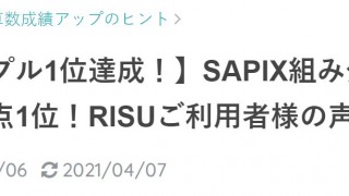 2021年4月10日(土)。 RISU算数の公式ブログの記事「【トリプル1位達成!】SAPIX組み分けテストで満点1位!RISUご利用者様の声」について。 =quote= ...