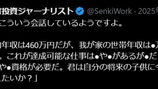 2025年11月26日(水)。【2026年1月30日(金)記録】 戦●君は娘とこういう会話しているようですよ。 「日本の平均年収は460万円だが、我が家の世帯年収は●万円で上位●%だ。偏差値●だな。これが達成可能 ...