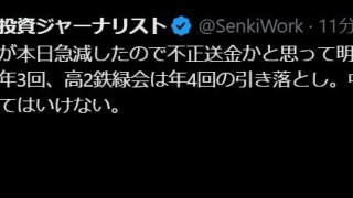 高2/Twitterの記録:「銀行口座残高が本日急減したので不正送金かと思って明細を見たがそっと閉じた。」