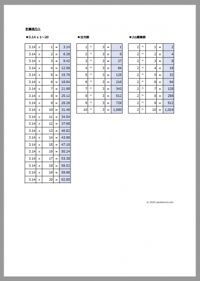 (7)計算視力③(3.14 x 1~20 → 立方数 → 2の累乗)