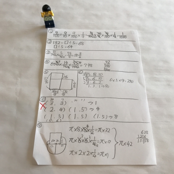 公文が目指しているのは「一人で高校数学の学習をできるようになること」であり、算数Fまでは単なる四則計算の訓練でしかありません。数学G~Iまで終わらせることでこの目標は達成されるのですが、数学I200までやらないと、算数F200までの設計思想を理解することはできないでしょうね。まあ、僕も日々自己否定をすることで仮説を修正しているので、また半年後くらい(=小6がスタートする)に違うことを語れる自分に成長したいと考えています。