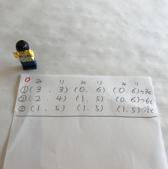 問8です。場合の数がどうやら苦手らしい。これで、クラスはβ4→5に転落しました。尚、本日から3日連続で10点満点の場合には昇格することを娘に伝えました。