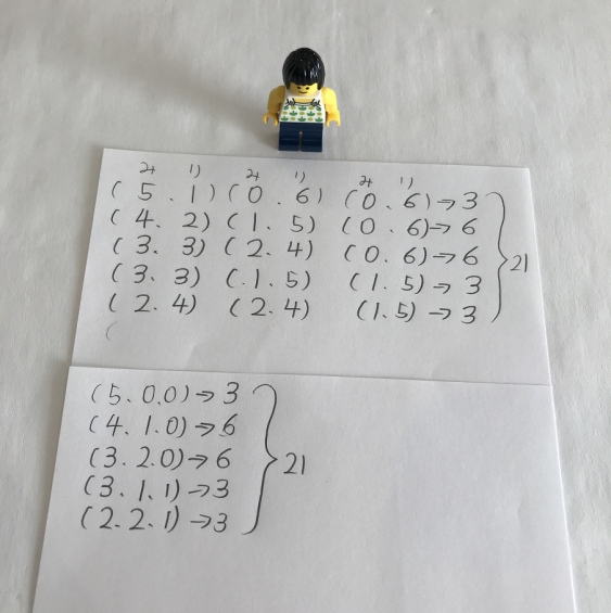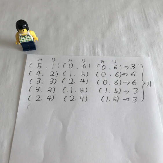 ということで解決。算数は我慢。教えてはいけません。教えるということは、考えるきっかけを奪うことになります。