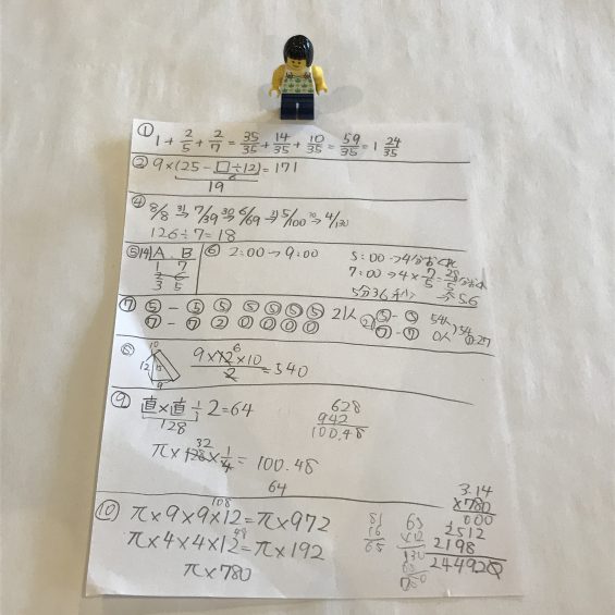 公文数学K20までの復習も順調。
