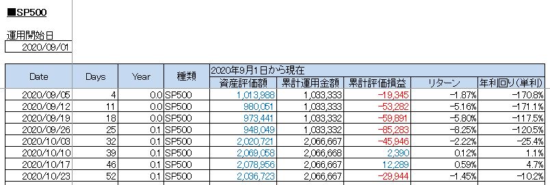 中学受験と資産運用:S&P500投資の運用結果(2020年10月24日(土))