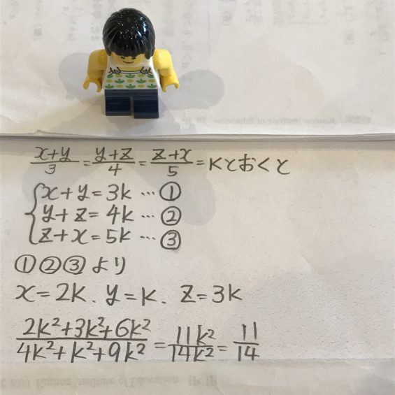 公文数学K20までの復習は1問/dayの時間投資ですが、一番複雑と思われる数学J181~200(=高1)の証明問題でも2分程度なので、負担感が少ないですね。娘は小4の終わりにはこのJの最後をやっていましたが、小4でも楽々とできることを、高1まで待つ必要性はどこにもないと思います。