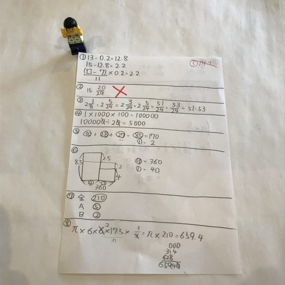 サピックス算数基礎トレは、1問間違えました。凄いですよ。だって、これができないのですから。