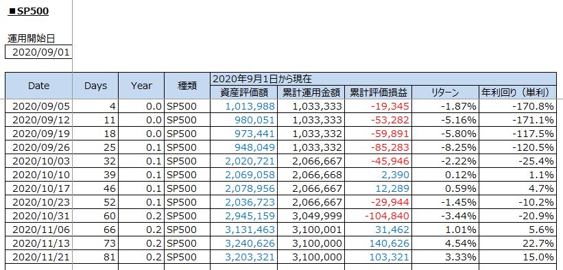 中学受験と資産運用:S&P500投資の運用結果(2020年11月21日(土))