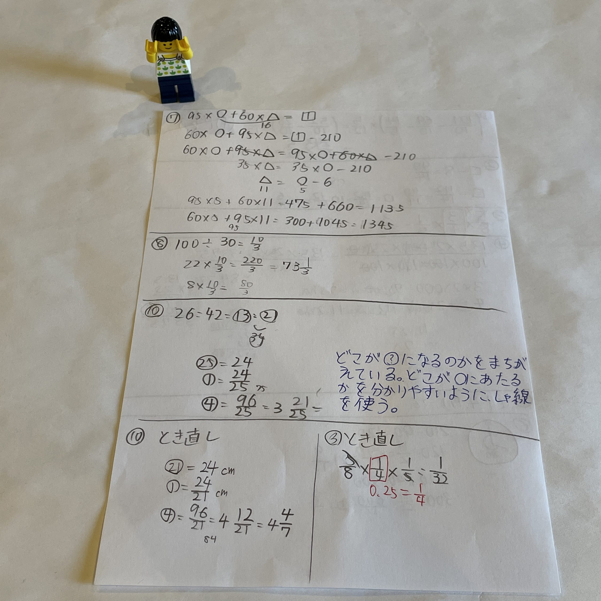 サピックス算数基礎トレは2問間違い。0.25を3/4と書いたことを指摘したら、
