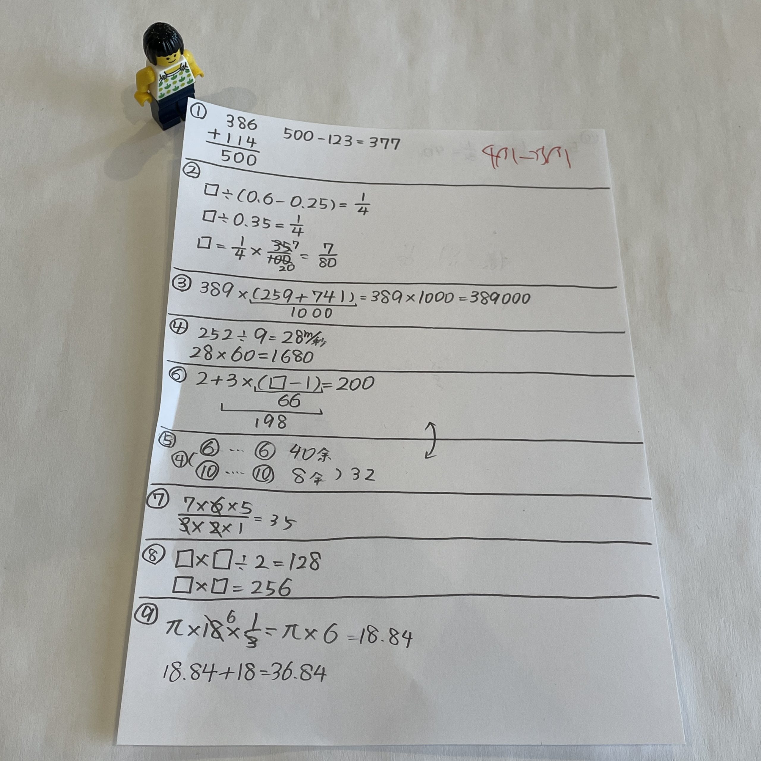 公文英語JI120を1枚実施。サピックス算数基礎トレは、10点満点で4β1→5β1。