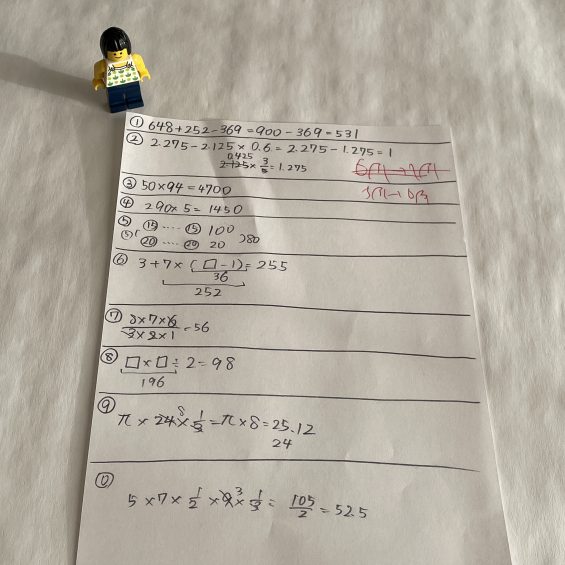 サピックス算数基礎トレは、10点満点で5β1→6β1。余った時間で、サピックス算数の宿題を進めていました。