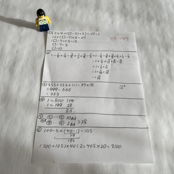 サピックス算数基礎トレは、、、2月の最後のページですね。10点満点でしたので、3β1→4β1。