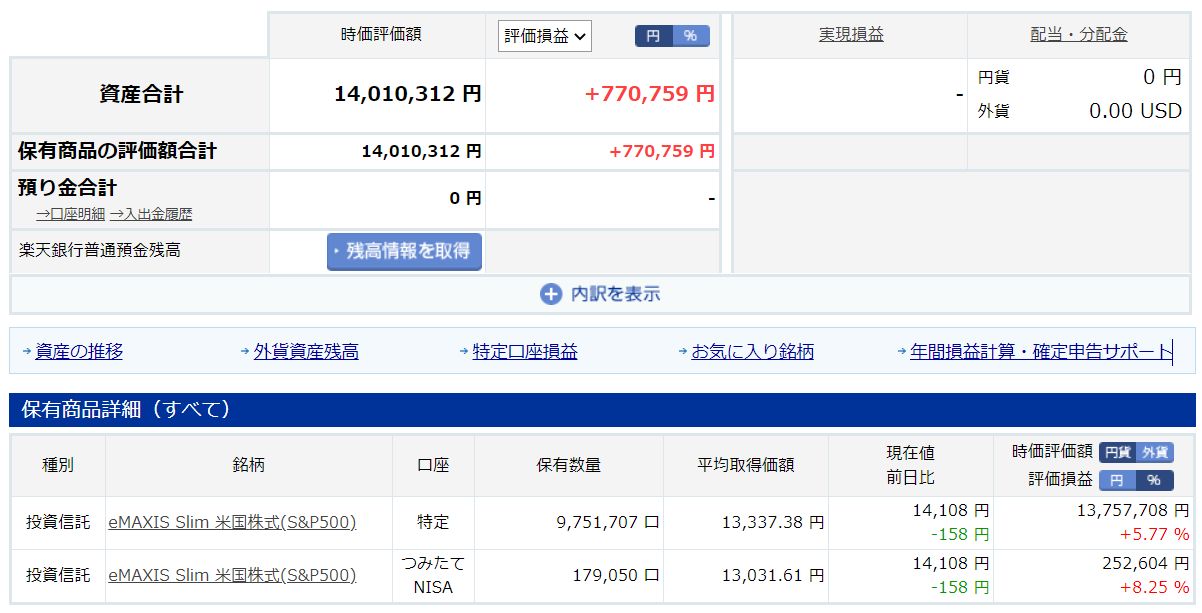 S&P500は下げていますが、円安に振れているので影響が相殺されているようです。まあ、下がろうが上がろうが、僕にとっては関係ありませんけどね。機械的に300万円を積み立てるだけです。