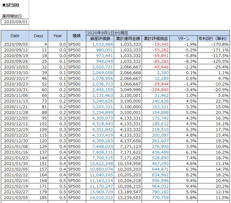 中学受験と資産運用:S&P500投資の運用結果(2021年3月5日(金))