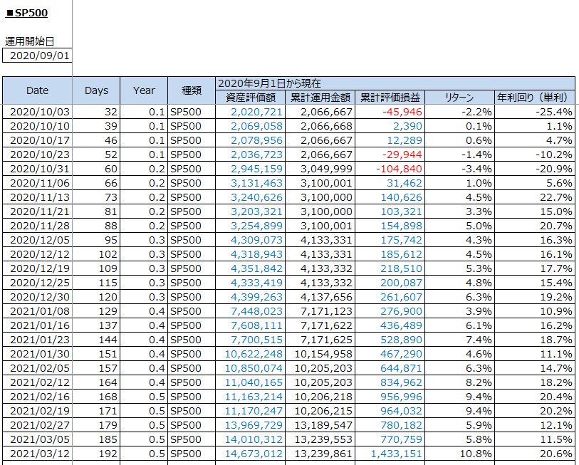 中学受験と資産運用:S&P500投資の運用結果(2021年3月12日(金))