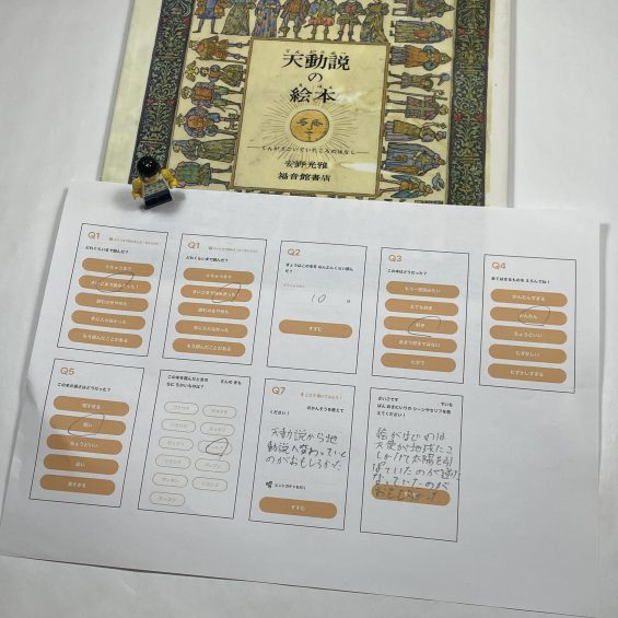 天動説の絵本』で娘に試して貰いましたが、実に効率が良いです。紙に書いて貰って、それを僕がヨンデミーのアプリに入力することにします。