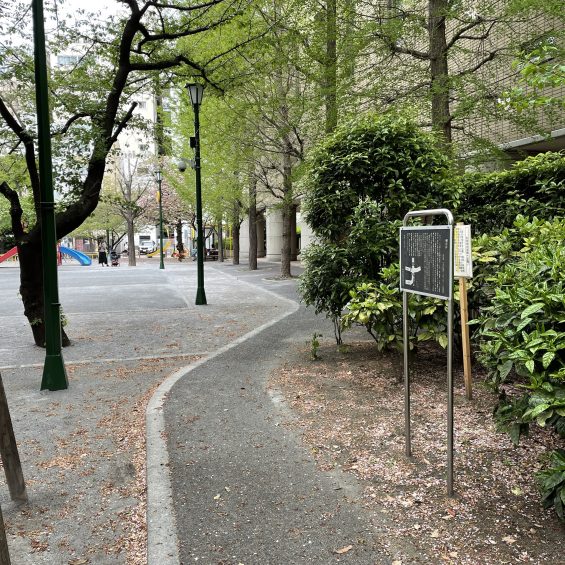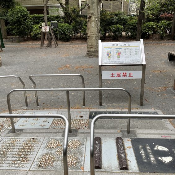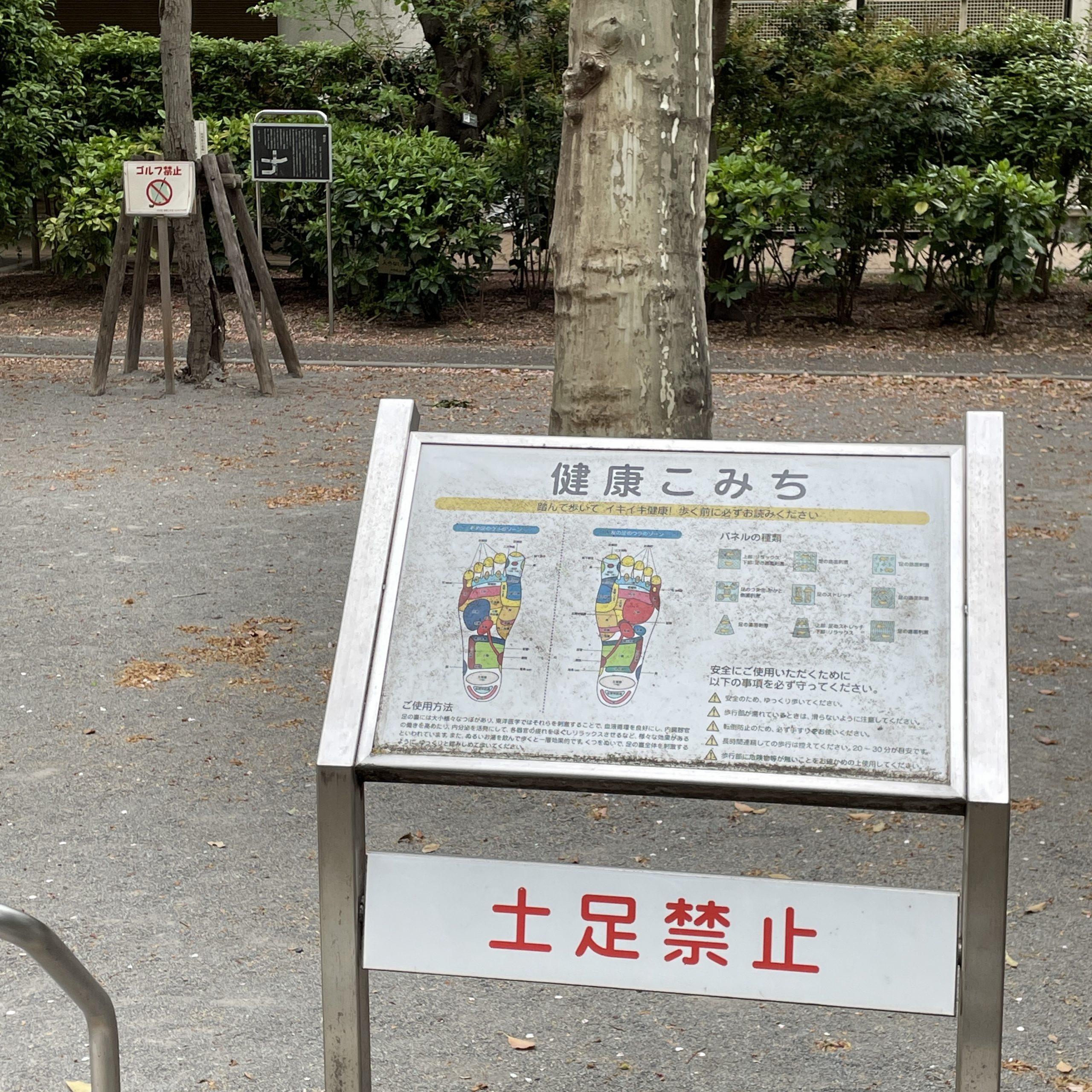 尚、看板があるだけで、史跡っぽくありませんでした。目の前は公園になっており、「健康こみち」が。