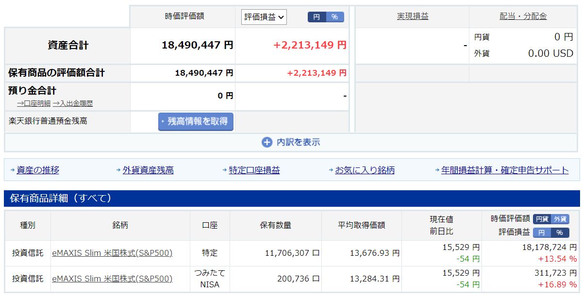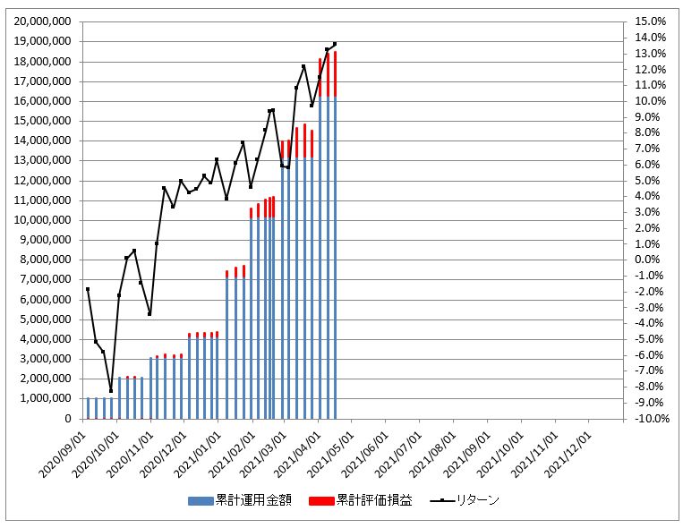 2020年9月~12月は100万円/monthを積立て、2021年1月からは300万円/monthを積み立てています。コツコツと、地味な積立です。
