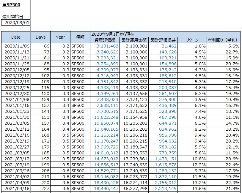 中学受験と資産運用:S&P500投資の運用結果(2021年4月16日(金))