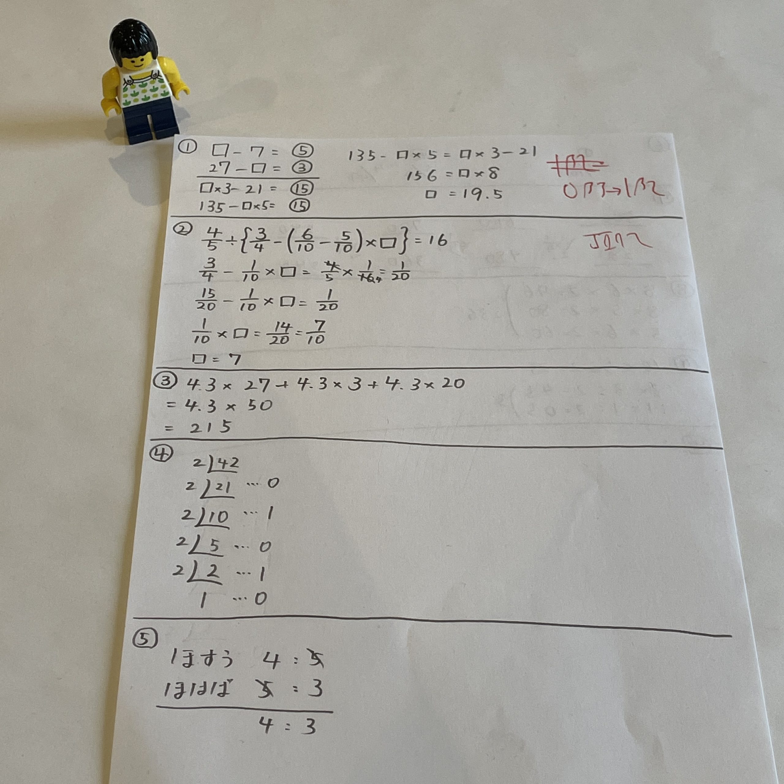 公文英語JII72を1枚。サピックス算数基礎トレは、10点満点で0β3→1β2。