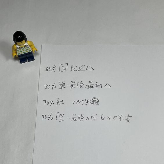 ④理科:75%。最後のばねが不安。