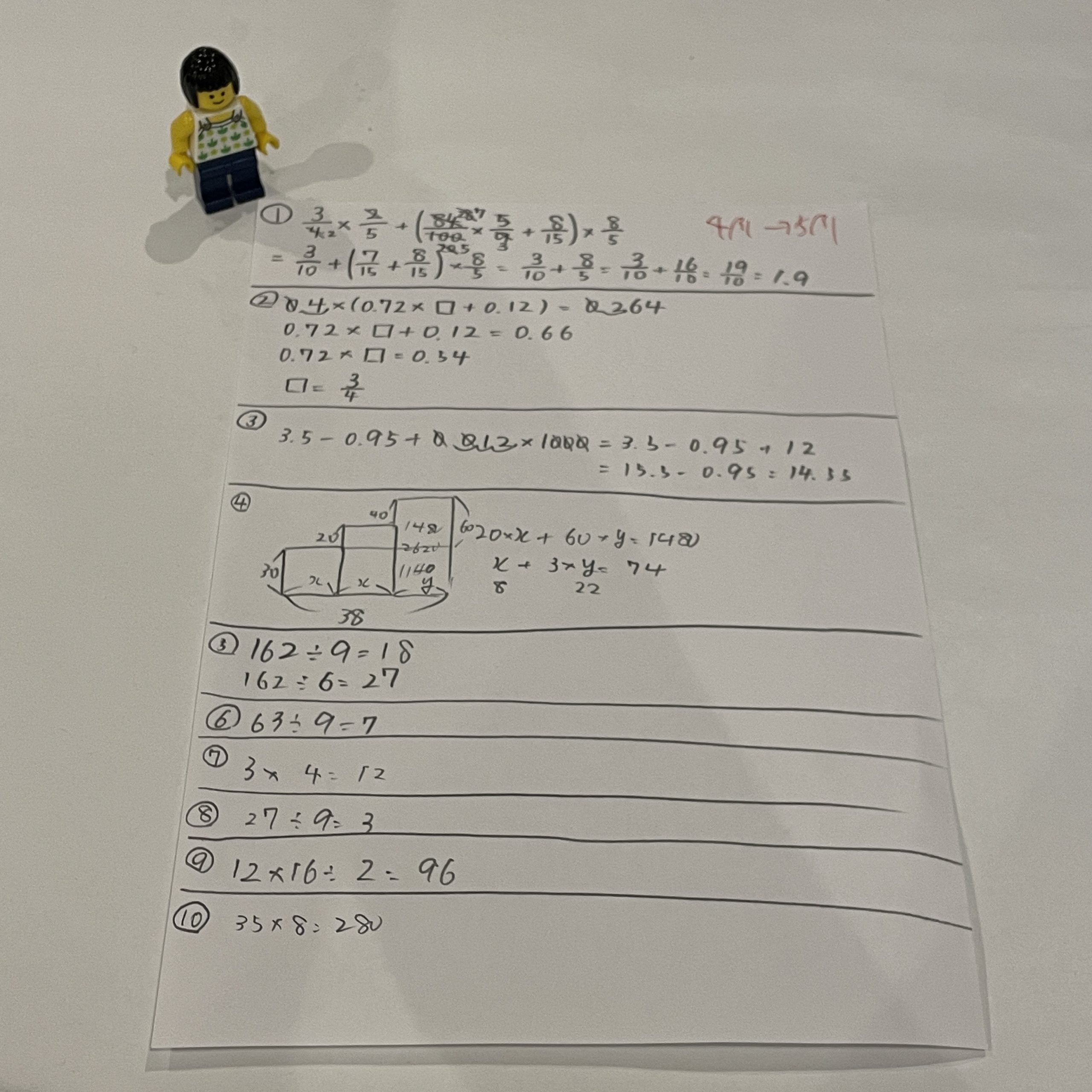 サピックス算数基礎トレは、10点満点で4β1→5β1。その他もメニュー通りこなしたようです。