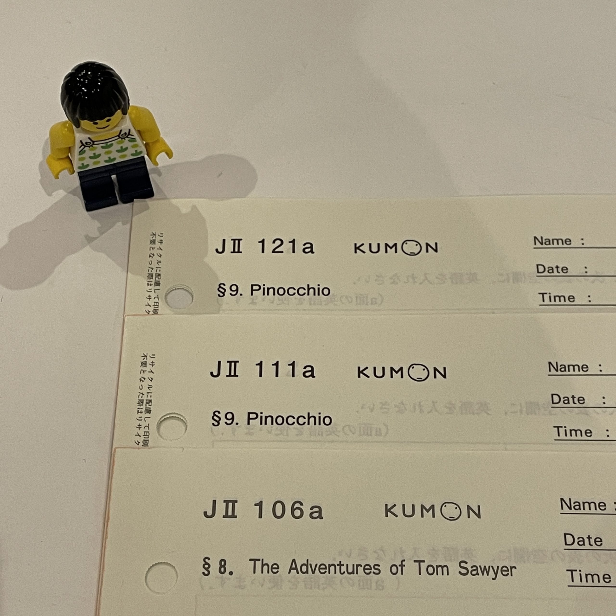 地味に継続している公文英語。現状の1枚/dayから、2枚/dayに増やそうとしましたが、僕が多忙すぎて公文教室への連絡を忘れました(汗)。まあ、欲を出すなというお告げでしょう。これまで通り、1枚/dayのペースで進めることにします。