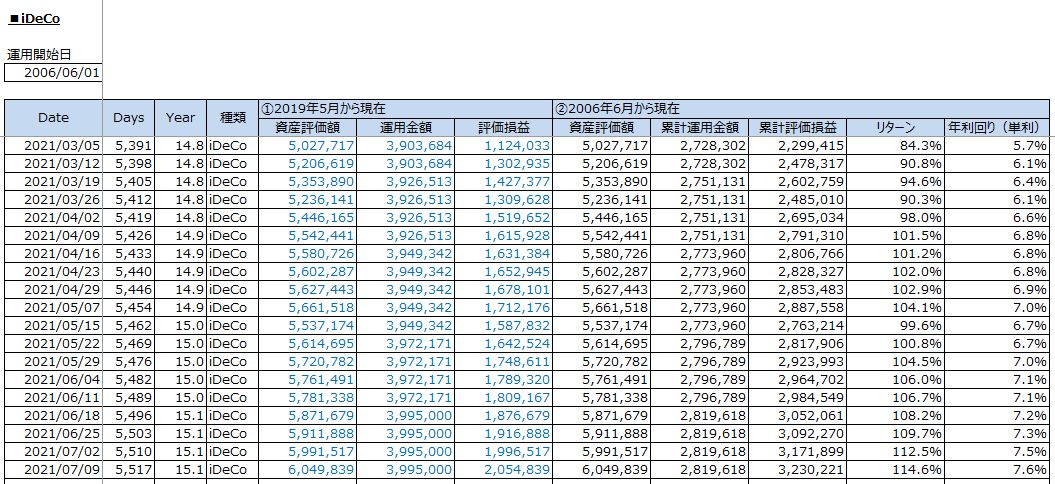 中学受験と資産運用:iDeCo投資の運用結果(2021年7月9日(金))