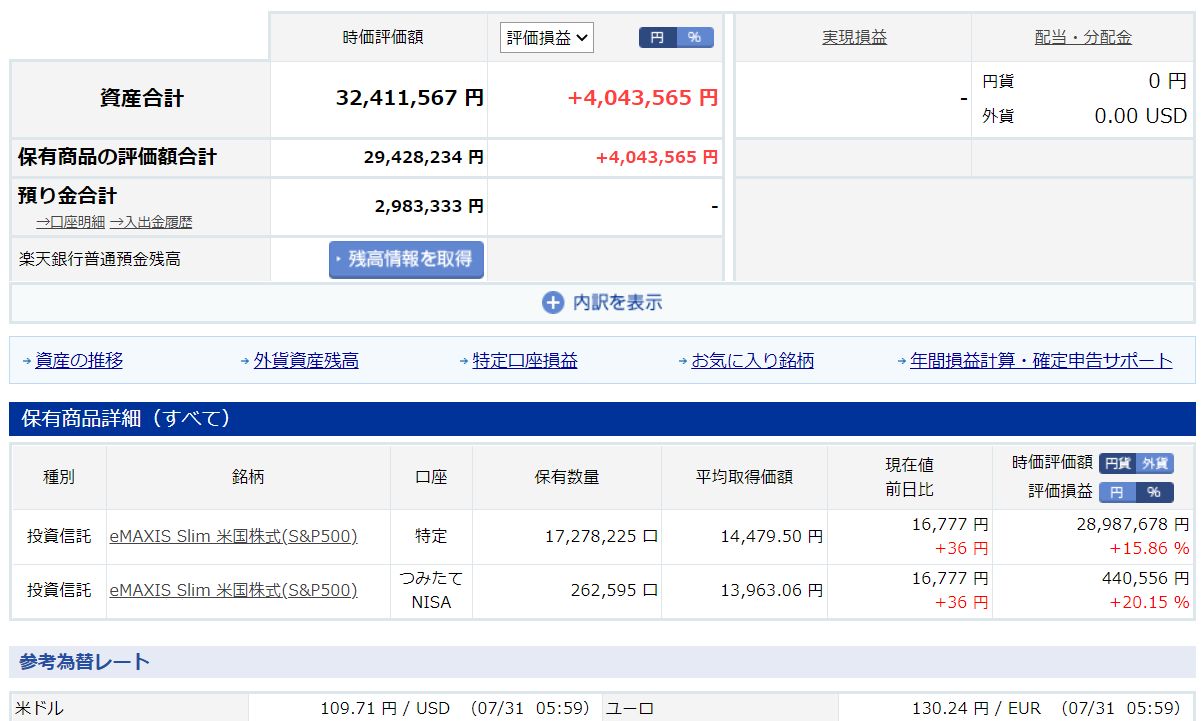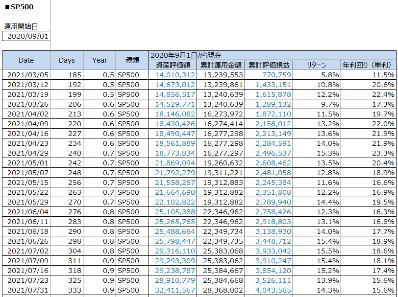 中学受験と資産運用:S&P500投資の運用結果 (+4,043,565円 / 2021年7月31日(土))