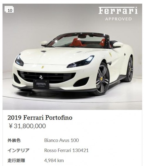 ・・・新型コロナデルタ株で世界は大揺れですが、投資方針通りに、8月1日に300万円を積立てました。これにより、3,200万円のポートフォリオに育ちました。2019年のFerrari Portofinoの中古車と同じくらいになりました(画像出所:コーンズ芝)。
