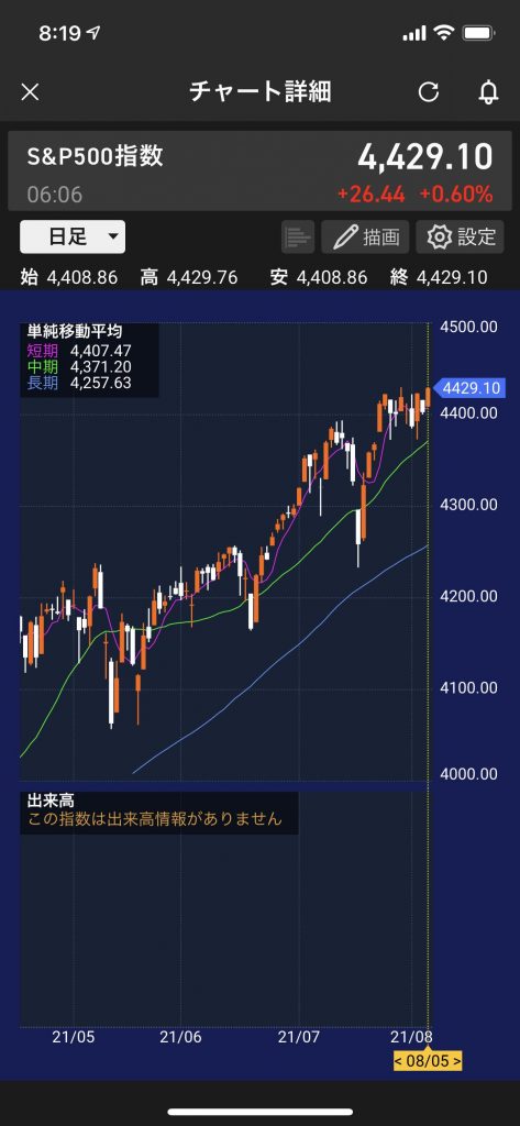中学受験と資産運用:S&P500が最高値更新 4,429.10(2021年8月5日(木))