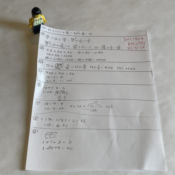 ・算数の復習:2問/day