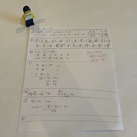 公文英語KI55-56の2枚を実施。サピックス算数基礎トレは1問間違えて、4β1→0β2。