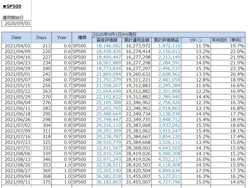 中学受験と資産運用:S&P500投資の運用結果 (+4,727,796円 / 2021年9月11日(土))