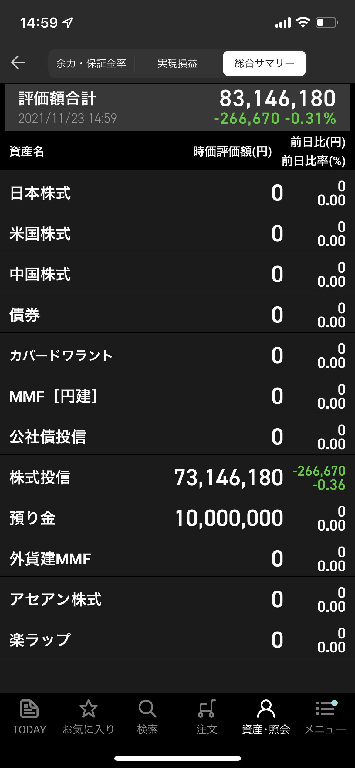 「国力の相対的な低下に伴い、日本円建ての資産を保有することの合理性が無くなった」ので、公開実験用ポートフォリオでは、米ドル建て資産への避難を完了しておきました。S&P500が暴落したら追加で取得できるように、余裕をもった運用をしています。