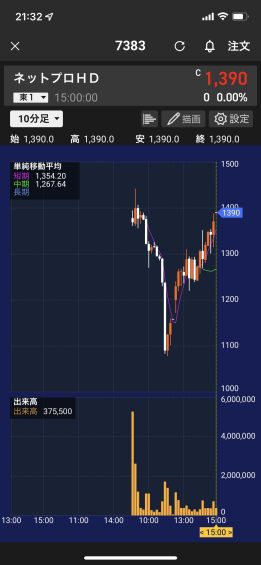 ・・・それにしても、本日は酷い展開でした。公募価格1,450円、初値1,378円(▲4.9%)、安値1,078円(▲25.6%)、終値1,390円(▲4.1%)。