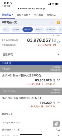中学受験と資産運用:S&P500投資の運用結果 (累計評価損益 最高更新 +9,365,035円 / 2021年12月25日(土))
