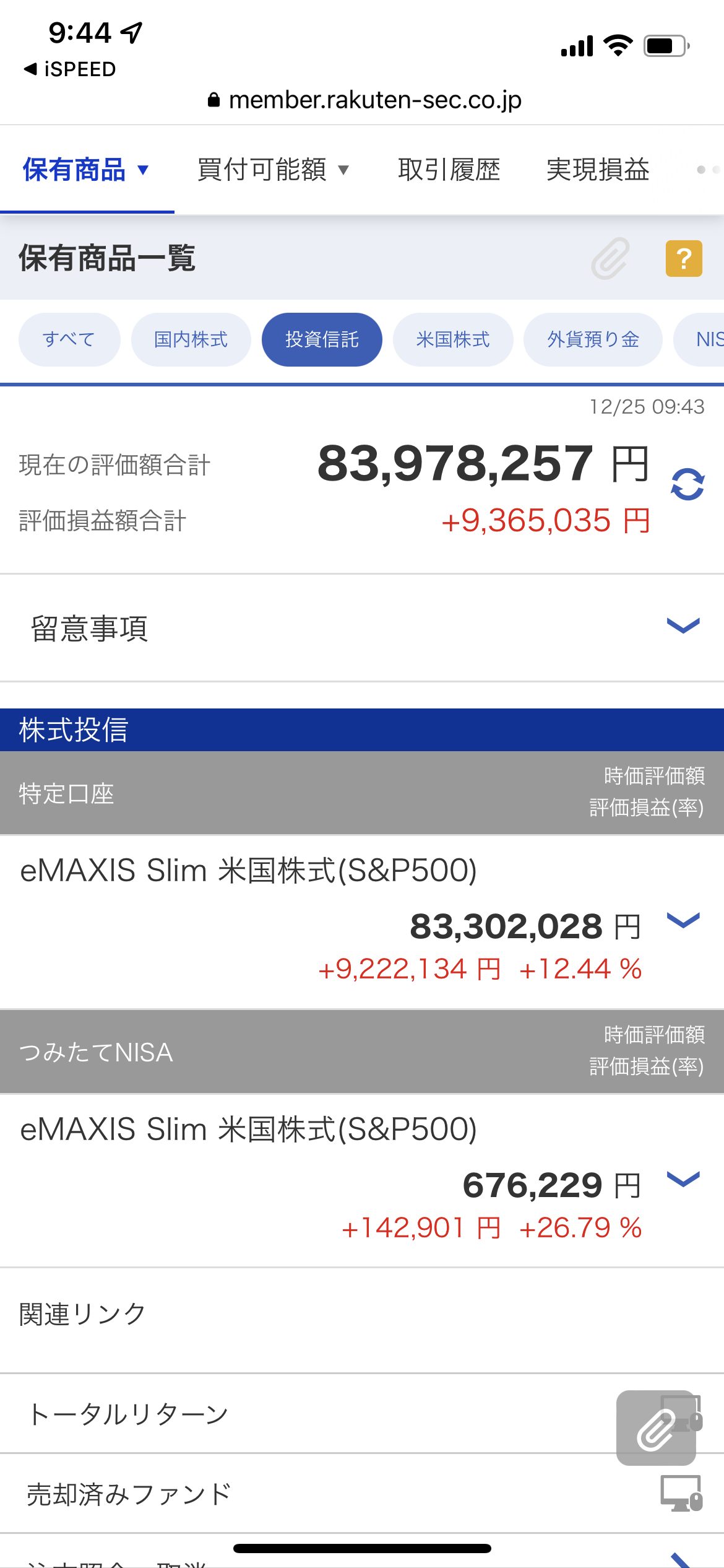 僕が日本の個別株で時間を割いて遊んでいる間に、S&P500は地味に回復しています。あと1%上昇すると、含み益が10,000,000円を超えますね。