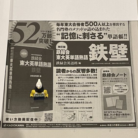 昨日の日経に鉄緑会の出版物の広告が掲載されていましたので、記録に残しておきます。
