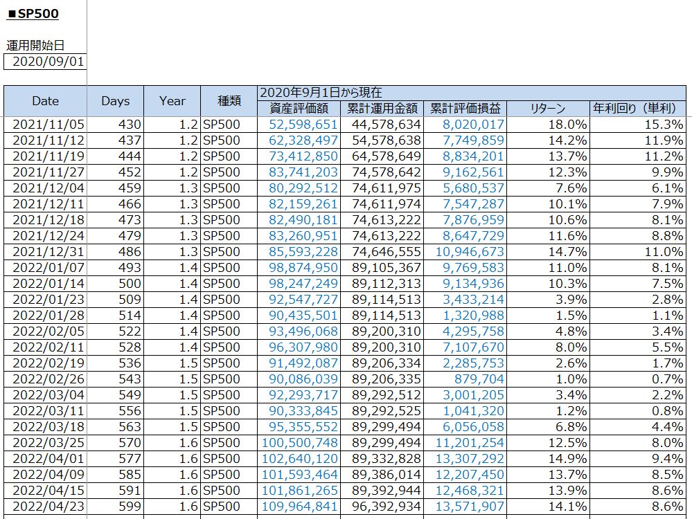 S&P500の公開運用投資歴1.6年。教育投資と資産運用には共通点が多いので、実験目的で1億円をS&P500で公開運用しています。