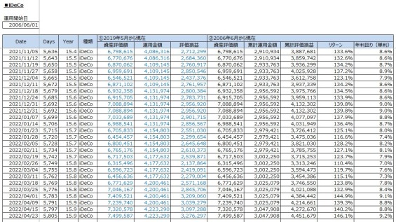 大学受験と資産運用:iDeCo投資の運用結果(累計評価損益:+4,451,679円(過去最高) / 2022年4月23日(土))