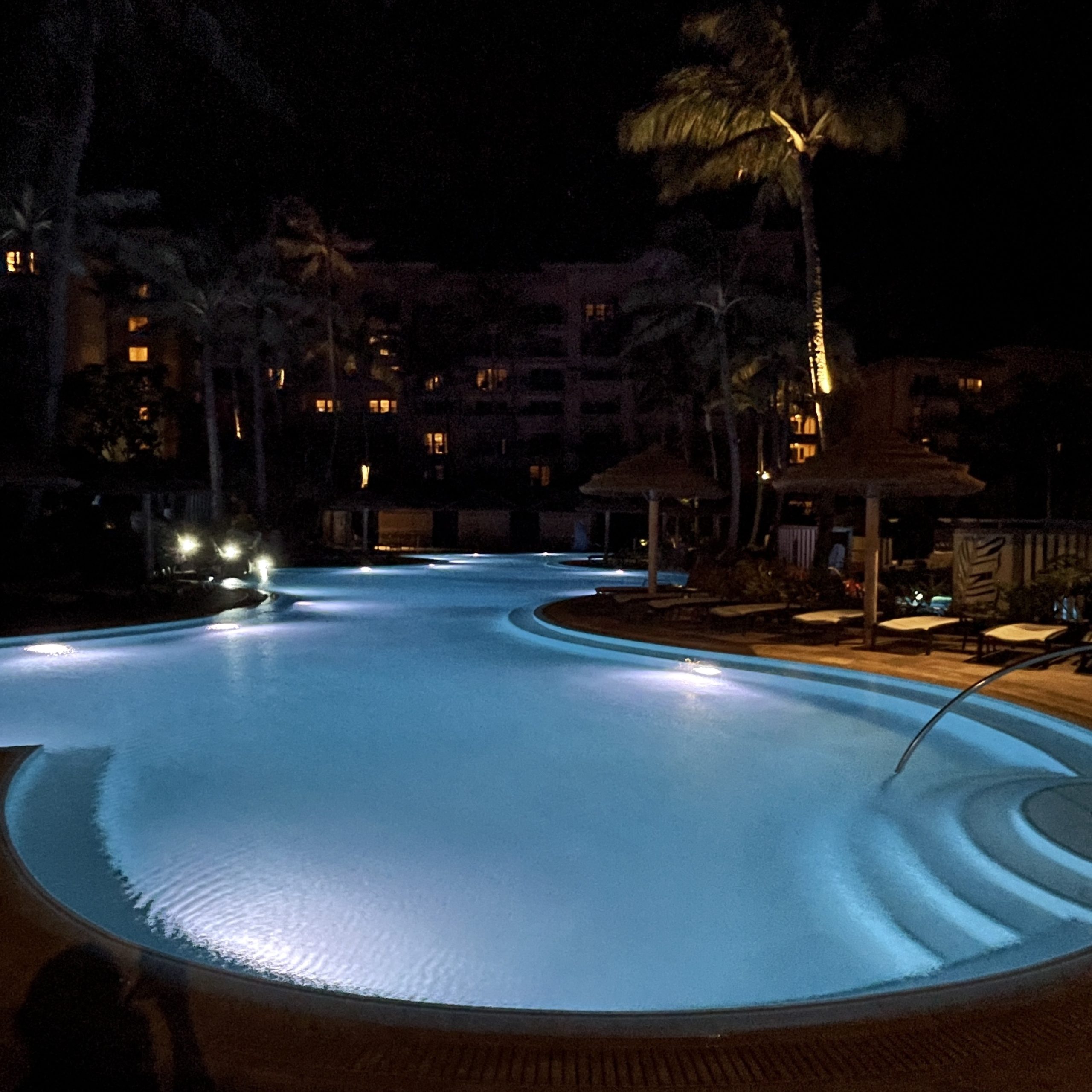 中1/投資教育:ハワイ不動産調査 Day 2 / The Ritz-Carlton Maui Kapalua 夜のプール