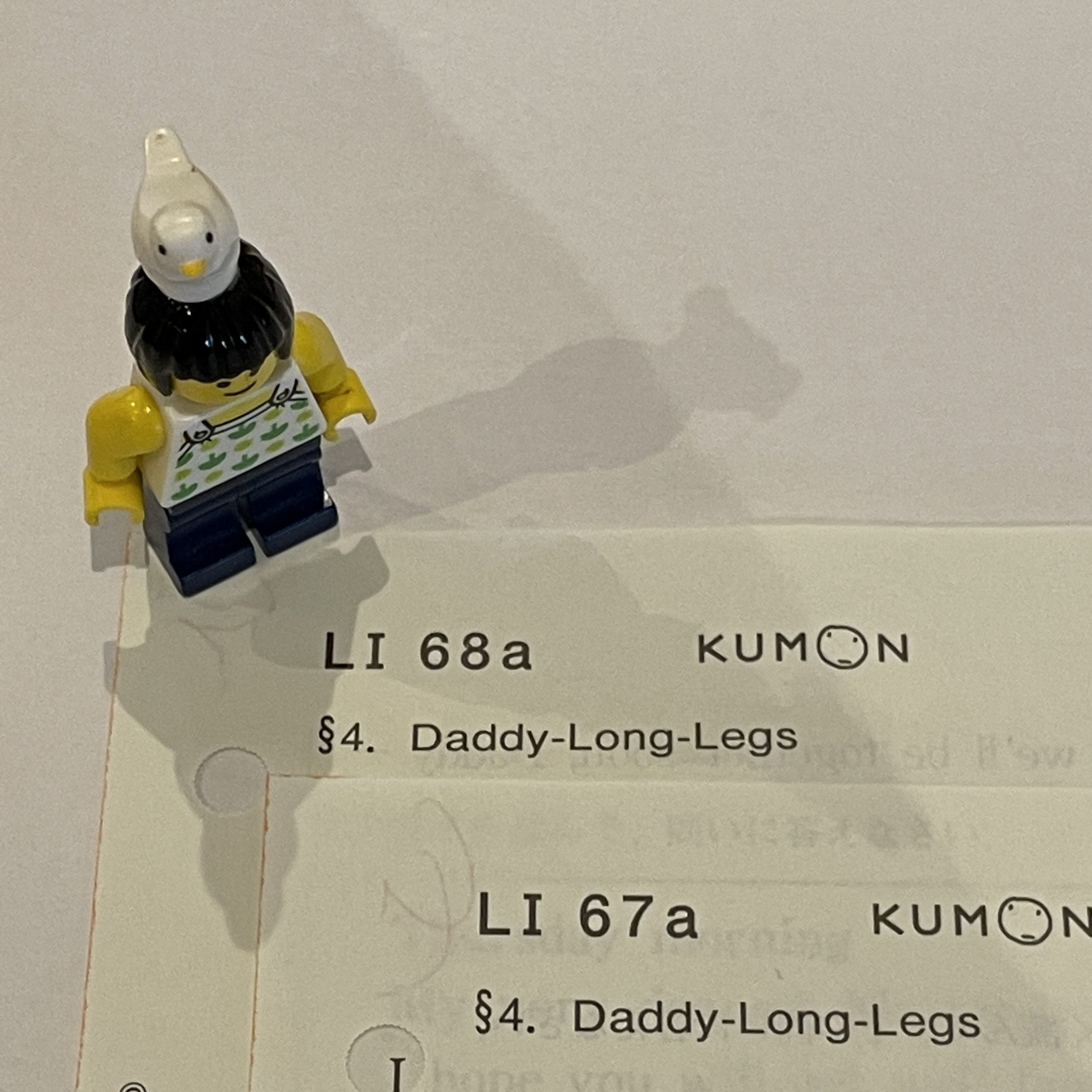 手持ち宿題プリントが枯渇し、英語LI67-68のDaddy-Long-Legsを2枚のみ。