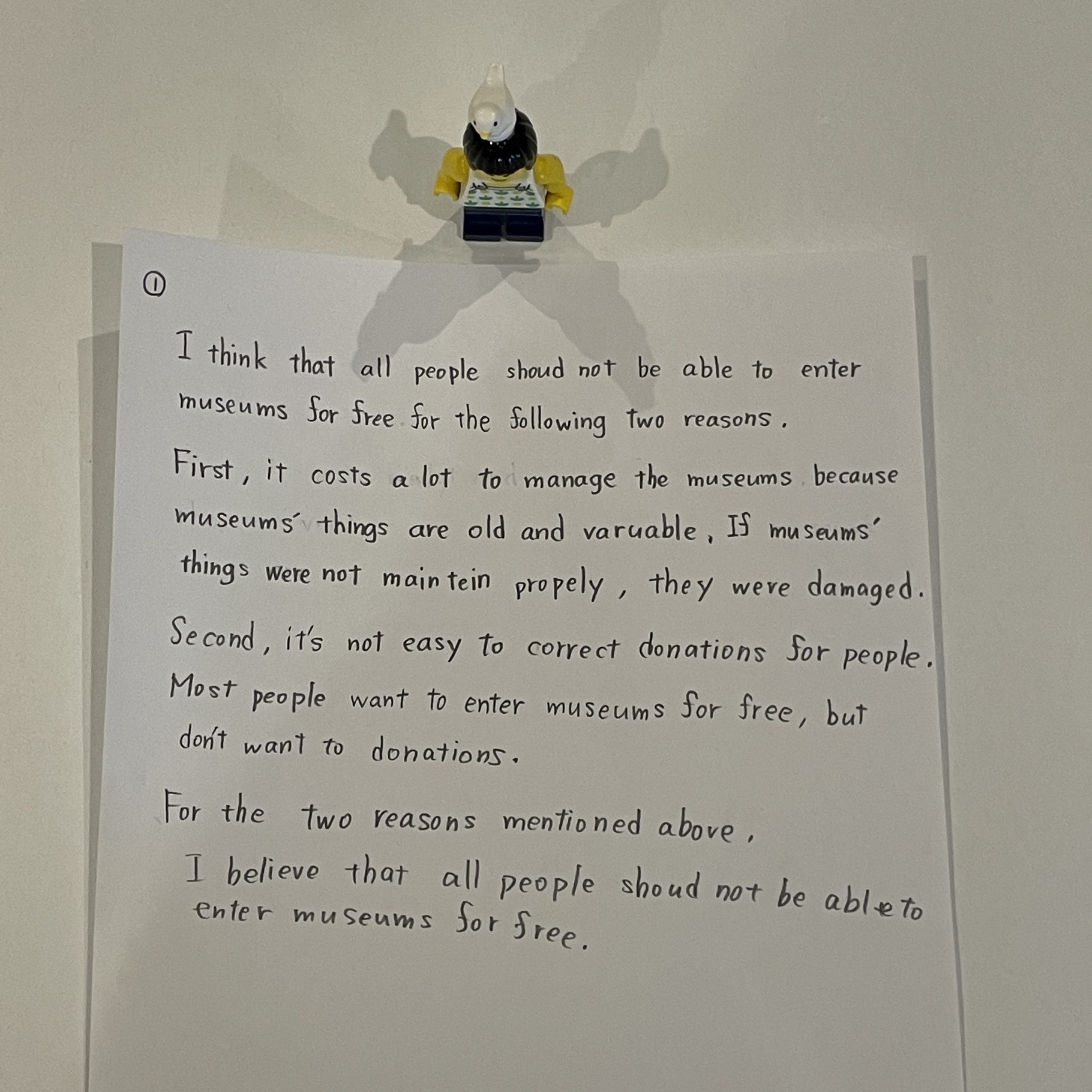 完成度が高い記述よりも、発展途上の状況を記録する方が、数年後に読み返す時に面白い。ということで、娘が書いたライティング2本を記録しておきます。僕が添削した上で、娘にはトレースして書き直してもらおうと思います。