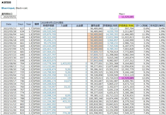 S&P500の公開運用投資歴2.3年。