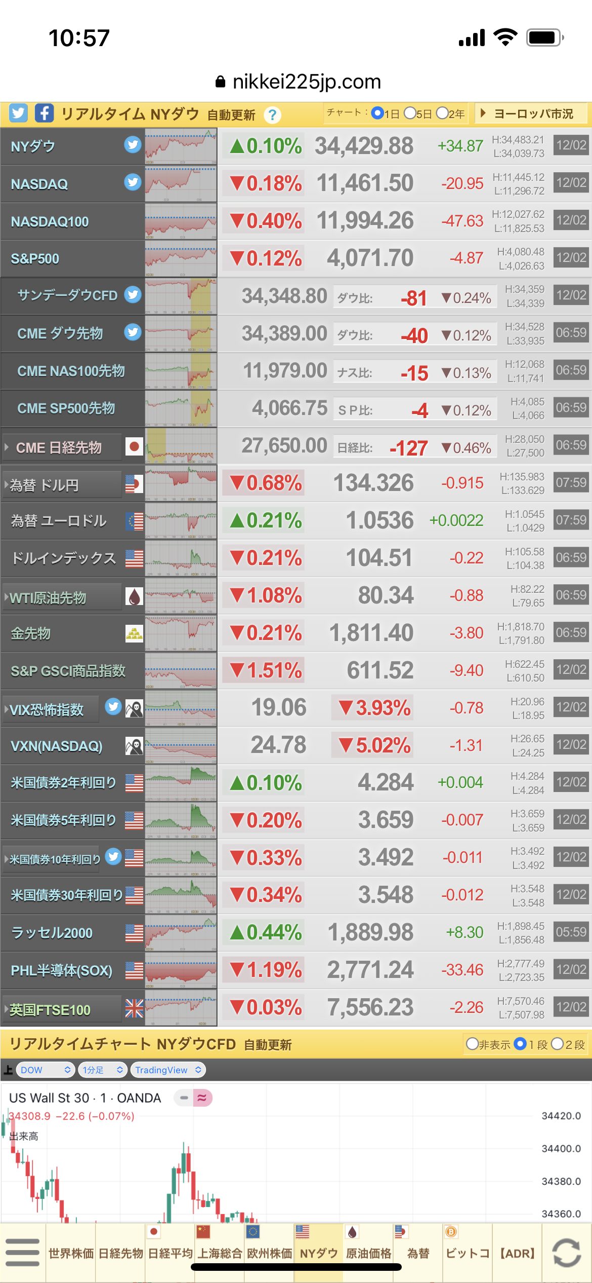 1)米国債2年利回り:4.531%→4.467%→4.284%