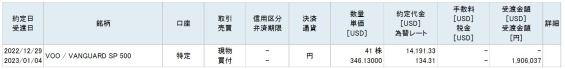 尚、必要としていない日本円があったので、とりあえず190万円分をVOOに投資しました(本日日本時間早朝に実施)。200万円のつもりが、株数を間違えた。。