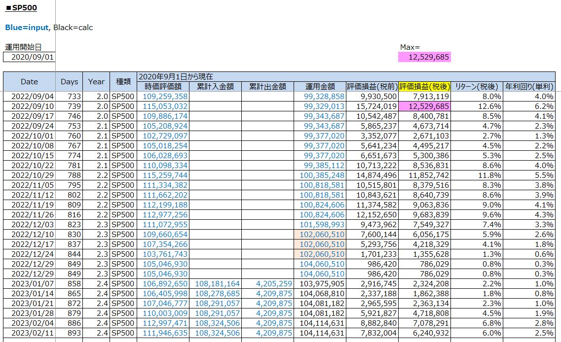 鉄緑会への資産運用:S&P500投資の運用結果(評価損益/税後:+6,240,932円 / 2023年2月11日(土))